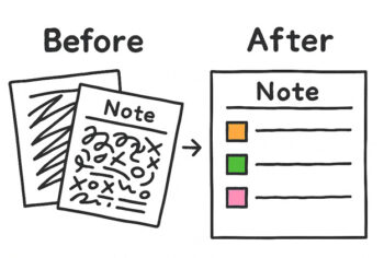 部署異動してすぐのころは、1枚の紙の中でいろんな方向に