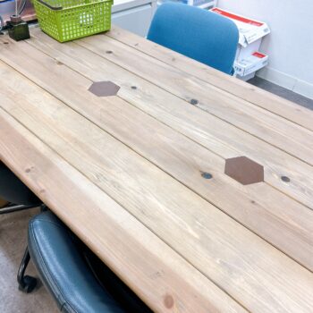 ご来社の際はぜひ、この パイセン作の手作り机にも注目してみてください。