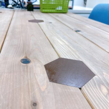 色を変えてアクセントにしたり、六角形をバランスよく配置したり…シンプルな机に見せかけて、実は細部までこだわりの塊。「こうしたら面白いかな?」というパイセンの発想力がぎゅっと詰まっています✨