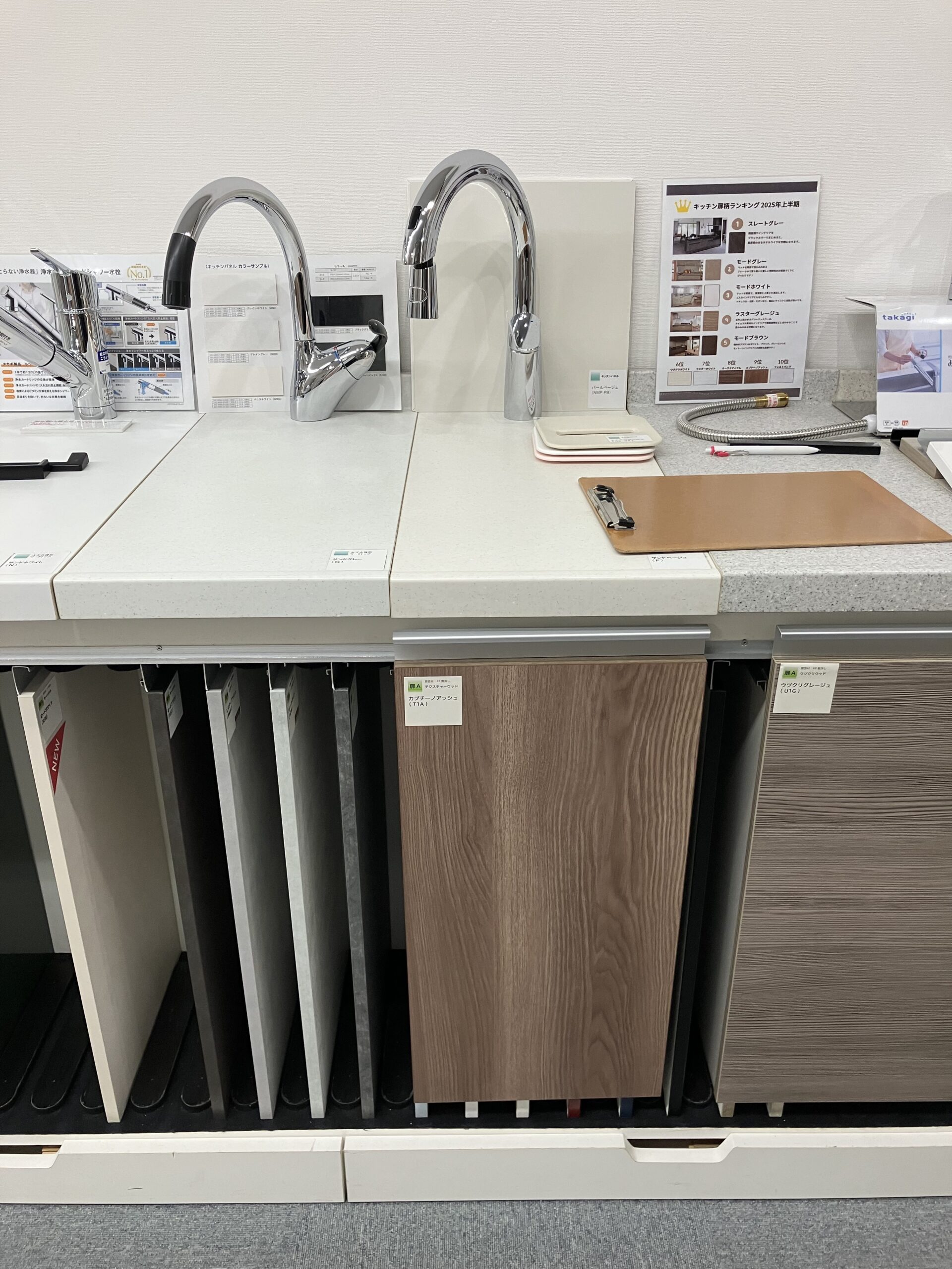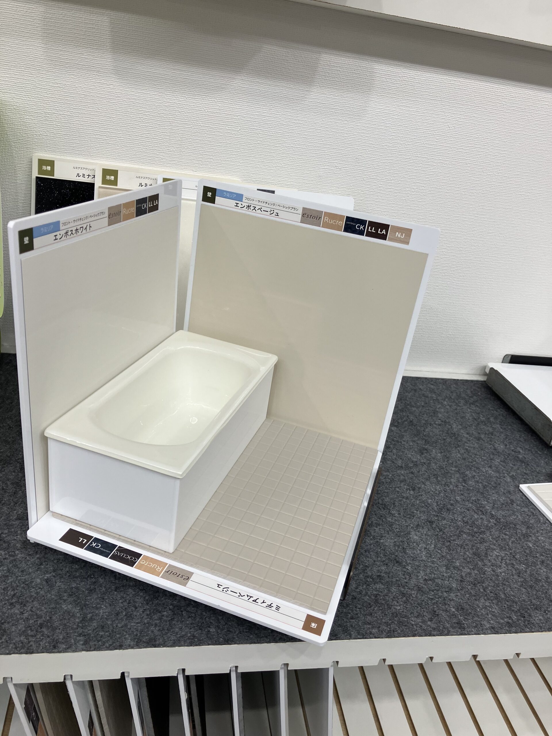 ショールームには、キッチンやお風呂のパネルの見本が